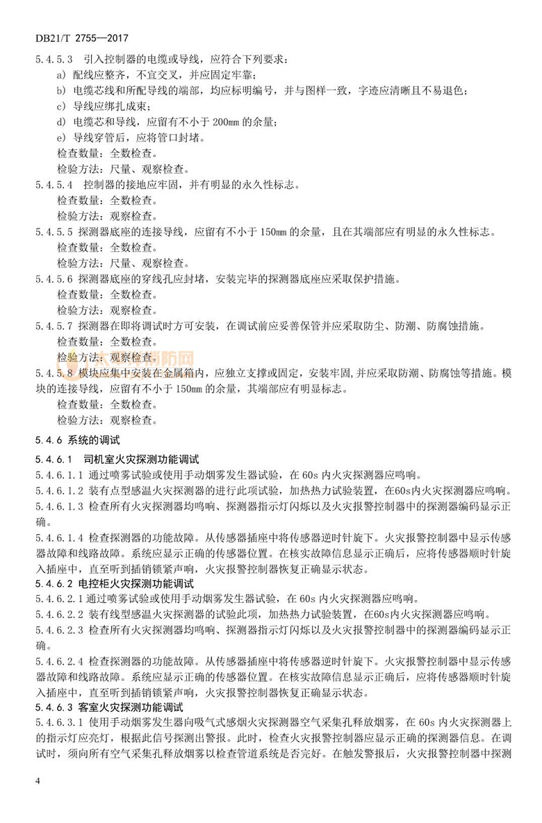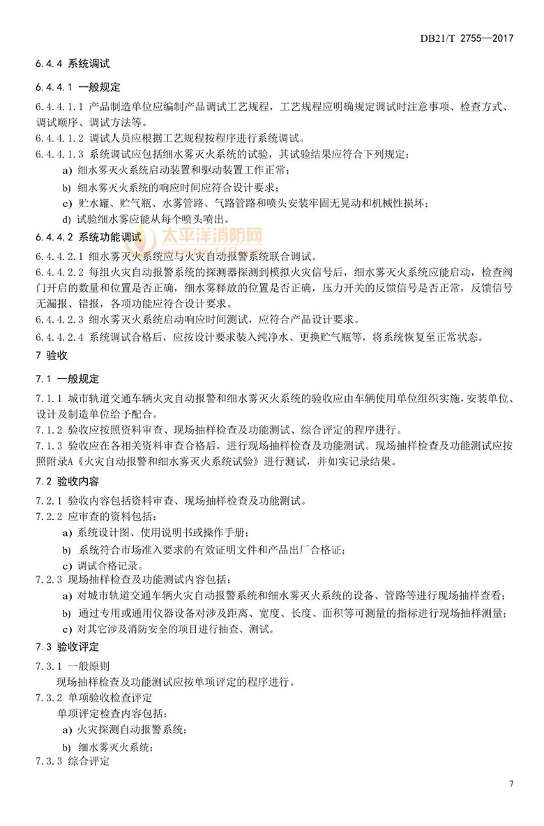 标准分为火灾自动报警系统和细水雾灭火系统两部分。火灾自动报警系统具有对轨道交通车辆司机室、电控柜、客室进行火灾探测并自动报警功能,能够极早期发现火情并自动报警。细水雾灭火系统具有扑救客室内初期火灾的功能,当客室发生火灾时,可自动进行灭火、控制火灾蔓延和降低有害烟雾浓度,为人员安全疏散赢得宝贵时间并提供可接受的环境条件。