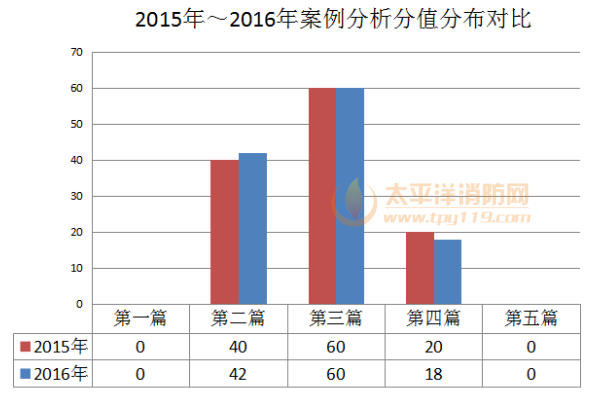 (3)2016年案例分析考试的难度降低,消防设施案例题中两道考查的是自动喷水灭火系统和消火栓系统,一道糅合了气体灭火系统、防排烟系统、消防供配电和火灾自动报警系统;建筑防火案例分析延续传统一道民用建筑一道工业建筑;消防安全管理采用选择题形式,根据常识更容易拿分。