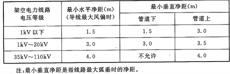 表5.3.5 架空电力线路和架空煤气管道之间的距离