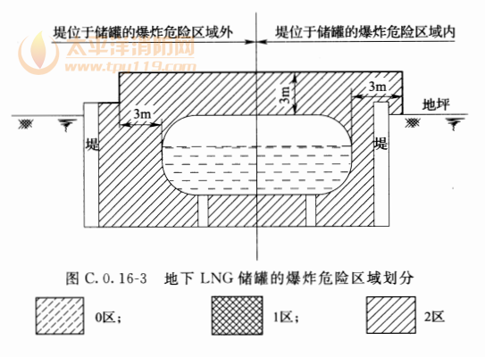 图C.0.16-2 半地下LNG储罐的爆炸危险区域划分