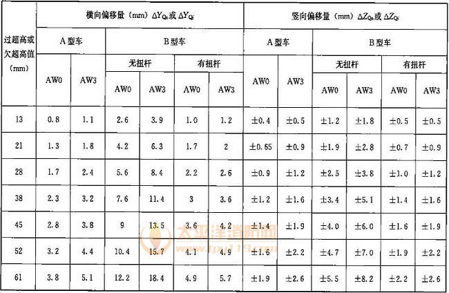 注:1 横向偏移量计算值,按车顶处Z=3800mm计算,车底架下边梁处加宽量为0,其余各控制点的偏移量采用插入法计算;