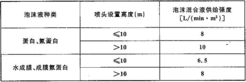 7.2.2 本条是在总结国内灭火试验数据的基础上,参照NFPA16《泡沫-水喷淋系统与泡沫-水喷雾系统安装标准》、BS 5306 Part 6《泡沫灭火系统标准》,并结合我国国情制定的。本条规定必须做到,否则灭火无法保证,为此定为强制性条文。